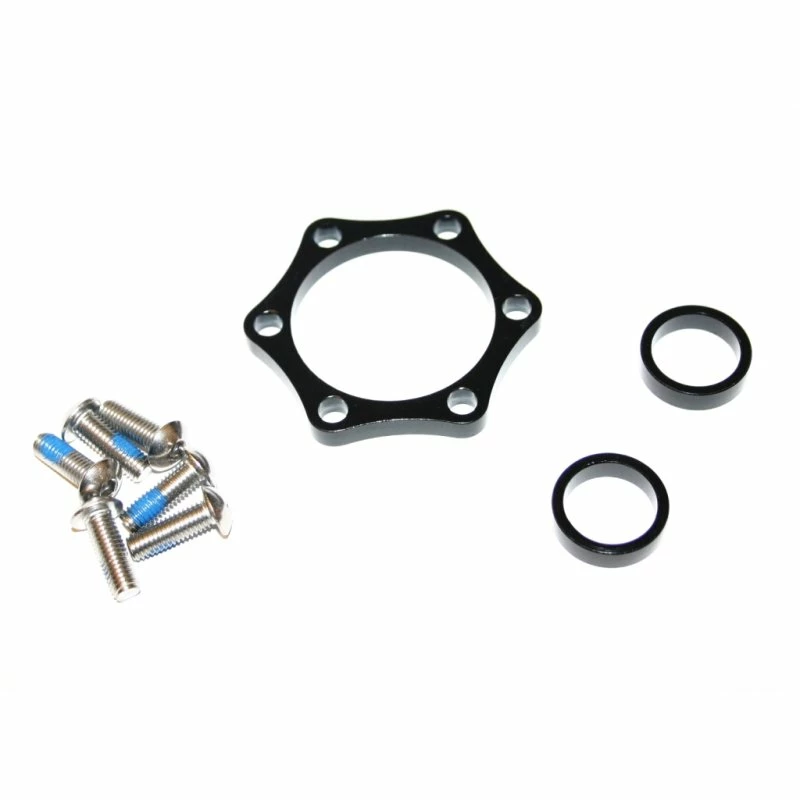 Mit diesem Adapter, Achshülsen können Sie eine Nabe mit 100mm Breite und 15mm Steckachse ind eine BOOST Gabel mit 110mm breite einbauen. Der Distazring wird mit den verlängerten Schrauben hinter die Bremsscheibe montiert. die Achshülsen werden einfach zwischen Nabe in gabel auf die 15mm Steckachse geschoben.