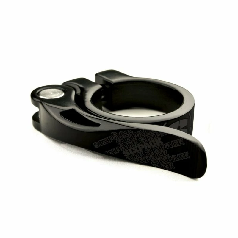 Aluminium Sattelklemme mit Sixpack Laserlogo und Klemmhebel. Durchmesser 31,8mm (Rahmenmaß ! nicht Stütze )