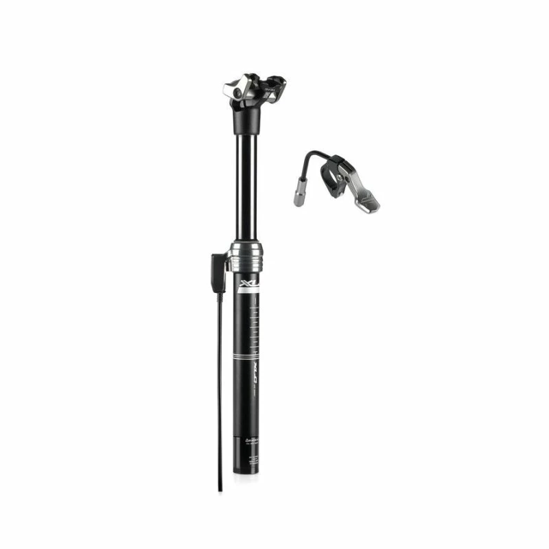 Die XLC Stütze mit Remote vom Lenker. Die Zugverlegung wird extern am Rahmen geführt, ähnlich Kind Shock Lev DX, Kabelabgang am Ring unten nicht am Kopf.